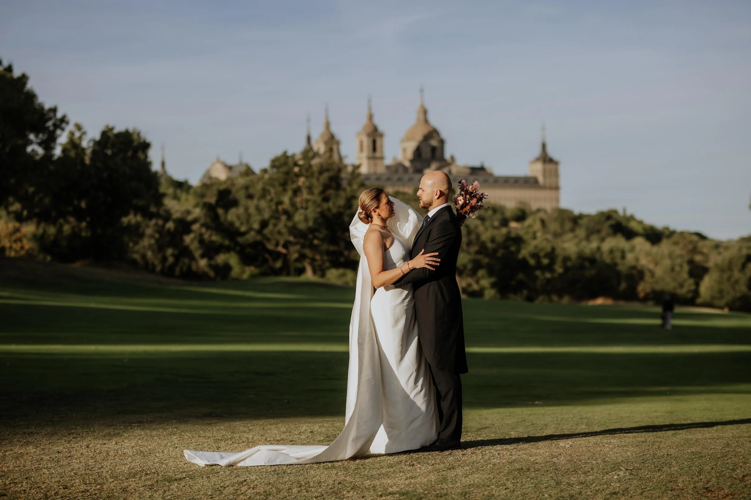 La ceremonia fue en Las Rozas y, tras ella, se dirigieron al Real Club de Golf de la Herrería, con unas vistas únicas al campo de golf y al Monasterio de San Lorenzo de El Escorial.